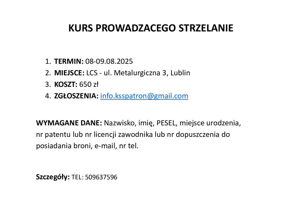 Zajęcia odbędą się w Lublinie – Lubelskie Centrum Strzeleckie ,